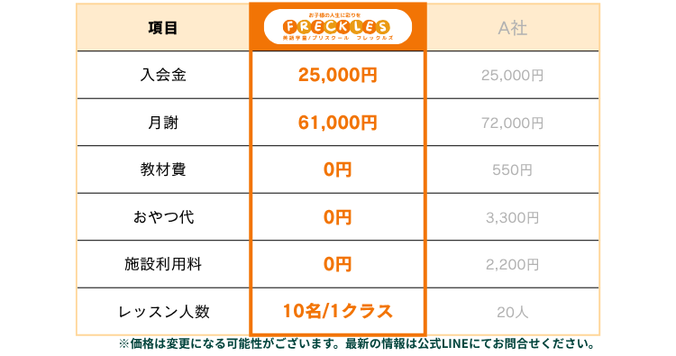 できるだけ保護者様のご負担を減らせるよう、料金にこだわりました。